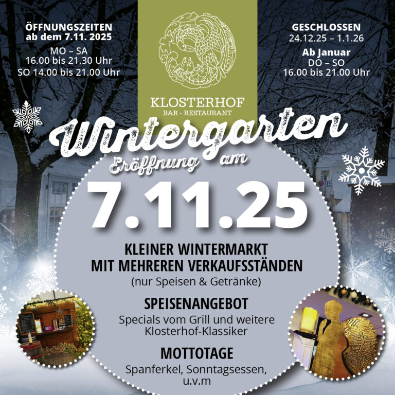 Wir laden Sie herzlich zu Einkehr im traditionellen Biergarten Klosterhof ein.